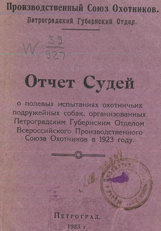 18-19 августа 1923г. состоялись полевые испытания подружейных собак. Организатор— Петроградский Губернский Отдел Всероссийского Производственного Союза Охотников (ВПСО) . Место проведения испытаний — «Красное болото» вблизи д.Лепсари, ст.Проба, Ириновская жел.дорога.